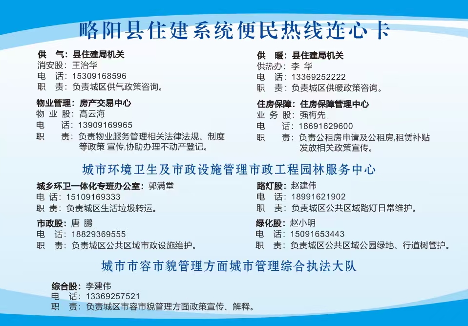 基层治理是国家治理的“神经末梢”,民生服务是党联系群众的“连心桥梁”。为着力解决群众在供暖供气、物业服务、市政设施使用中的急难愁盼问题,打通服务群众“最后一公里”,略阳县住建局党支部深入贯彻党建引领基层治理的核心要求,切实把党组织的政治优势和组织优势转化为服务群众的实效,结合工作实际,创新工作举措,近日将供暖供气、物业服务、市政设施管理及城市管理工作负责人联系电话及相关服务保障机制在城区10个社区进行公示,畅通热线建立“接诉即办、动态跟办、超时督办”的三办机制,织密服务“保障网”优化服务流程,明确各领域负责人直接对接社区,将涉及群众诉求的业务股室直达社区,让每一份诉求都有人接、有人管、有回音。